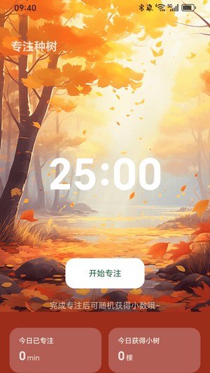 1.在专注模式下,用户可以集中精力的完成各种各样的重要任务,每当完成任务时,就可以种下一颗专注树。
