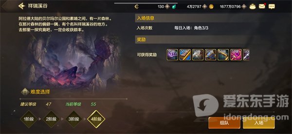 祥瑞溪谷在达到17级时开启,随着等级的提升可以选择更高难度的挑战,掉落的史诗装备等级也会更高。祥瑞溪谷是获取史诗装备的途径之一,与深渊相比难度较低,进入不需要消耗疲劳和深渊票,可作为日常免费深渊;