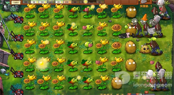 7、最后一波需要一直使用坚果墙和樱桃炸弹抵御僵尸进攻才能获得胜利。