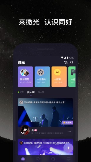 单身的你,可以在微光找人一起看片、听歌、连睡、看搞笑视频~