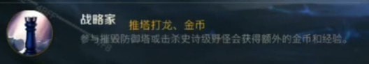 然后来说说战略家这儿天赋,字面意思是:参与摧毁防御塔或者急啥史诗级别野怪会获得外的金币和经验。