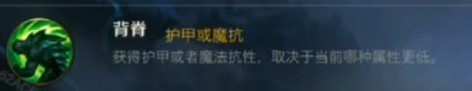 英雄联盟手游新增的几个天赋里有猎人吸血、背脊和战略家,然后来说说背脊这儿天赋,字面意思是:获得护甲或者魔法抗性,取决于当前那种属性更低。