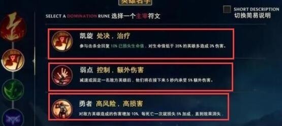除了基石符文迅捷步伐之外,主宰系、坚决系、启迪系其实都可以随玩家的爱好,对于喜欢秀的玩家们来说,凯旋肯定大于风暴聚集,甚至弱点这个天赋,在维恩控制和击飞英雄之后还有额外的伤害,另外勇者英文名为冠军 Champion的提高对敌方英雄10%的伤害,你每次死亡会损失5%的收益,直到清零的效果也很棒哦!所以除了基石天赋之外,其他的都看玩家个人喜好。