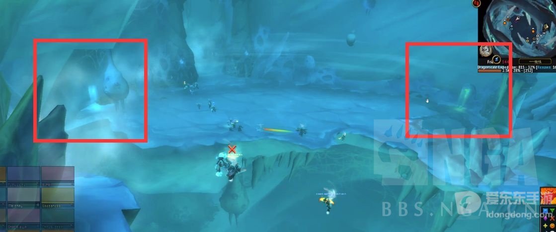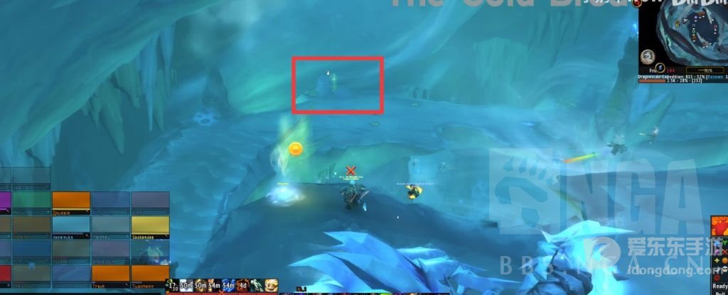 开boss后会出来一个[冰霜巨怪],这个大怪带盾,需要T把怪拉到点名DPS奶妈出的持续燃烧的火上,然后大怪的盾会持续削减,直到变为[燃烧巨怪]