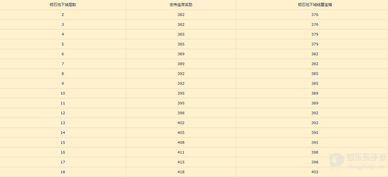 钥石地下城结算宝箱奖励的装备装等最高为 402,相当于英雄难度团队副本前四个团队首领掉落装备的装等,低于5、6号boss的408和7、8号的411-418。