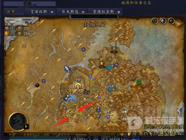 魔兽世界我的集合玩具可以在上图位置击败该稀有获得,稀有名字是风暴之杉达纳