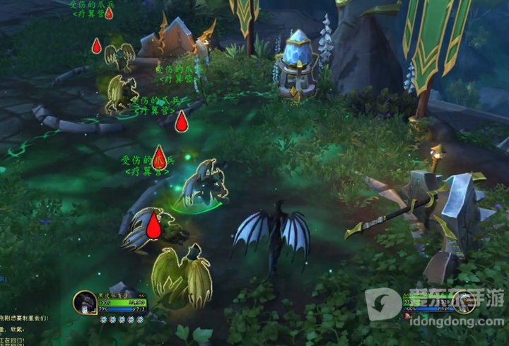 在唤醒了联盟和部落小龙人领袖后看个动画,你发现看守你的是蓝龙军团,不少小龙人已经受伤,你要先学会用活化烈焰奶受伤的小龙人。