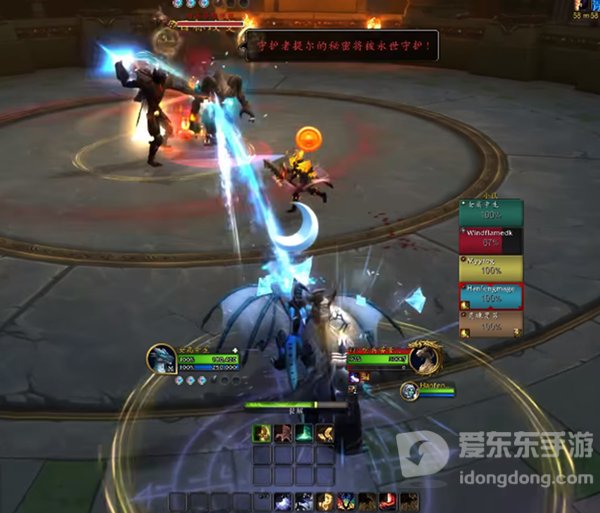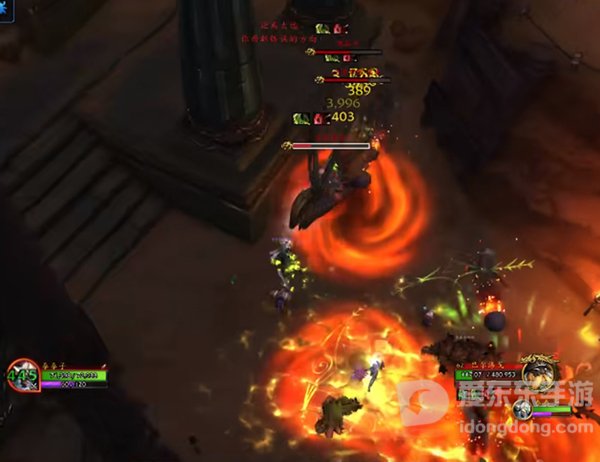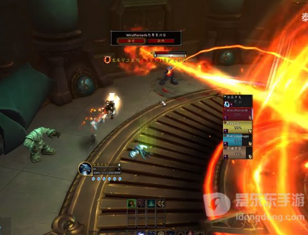 战斗开始,建议把艾博隆拉在2个被选中的守护者身边。在P1时,艾博隆会使用灼烧轰击,对面前所有敌人造成高伤害,请坦克注意不要面向人群