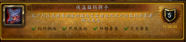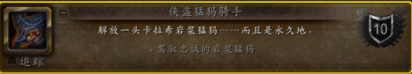 拿到以上两个物品可以在伊莱斯·轻指处兑换岩浆猛犸缰绳,岩浆猛犸缰绳需要在骑乘[10.0 探索成就攻略]提到过的侠盗猛犸骑手成就所需的温顺的岩浆猛犸时使用。