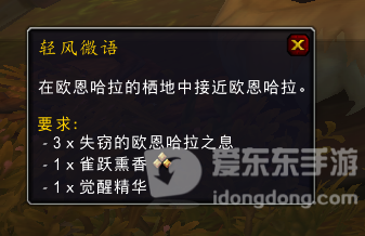 当你拿到3个失窃的欧恩哈拉之息之后再去找戈多罗托,它会给你提供“轻风微语”任务,要求你在欧恩哈拉的栖地接近欧恩哈拉。