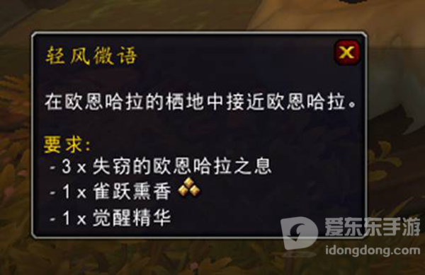 当你拿到3个失窃的欧恩哈拉之息之后再去找戈多罗托,它会给你提供“轻风微语”任务,要求你在欧恩哈拉的栖地接近欧恩哈拉。