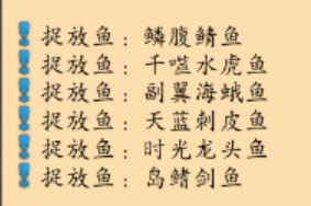在鱼窝有一个可以放生鱼的NPC,他会给到你具体可以放生的鱼的种类