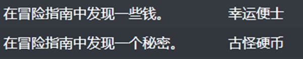 两个成就分别是在冒险指南中发现一些钱和一个秘密。