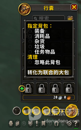 地城搜寻的小眼睛现在移到右下方,依附于微型菜单与背包框架: