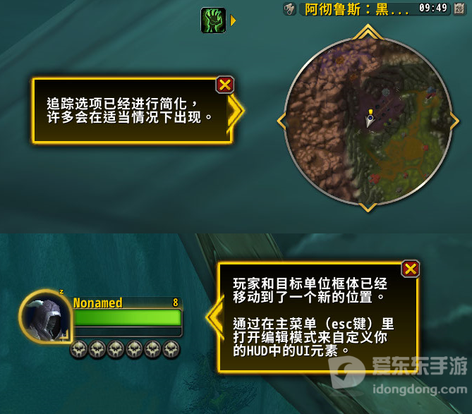 在重大界面变更上做了提示:新的单位框架使用了现代布局,将玩家与目标的头像置于画面中下方。