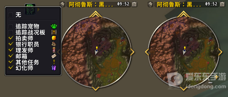 小地图原先厚重的框架去除后变得较为清爽,追踪选单置于顶部区域文字左边的小按钮;缩放观察区域的按钮只在鼠标指向地图时显示,而且可以直接使用滚轮缩放,以前这是小地图插件普遍带有的基本功能。