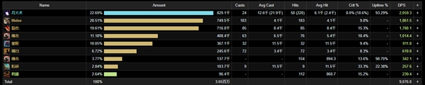 可见即便是单目标月火术的占比也非常高,点出双生月火可以提高约4.5%输出。