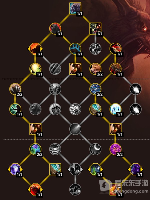 在尖刺伤害为物理法术混合伤害或干脆就是纯法术伤害的场合,还可以点出尖牙与利爪换取每次15%减伤。