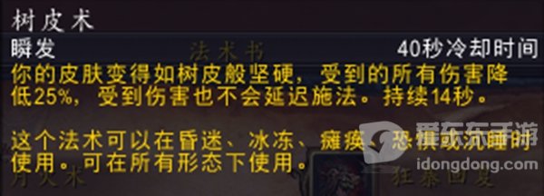 可作为90秒CD的第二个树皮术使用,同样可以应对法术尖刺伤害。