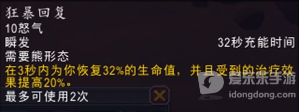 狂暴回复基础CD为36秒,实际上只降低到了32秒,而且1级天赋和2级天赋没有区别都是降低到32秒。