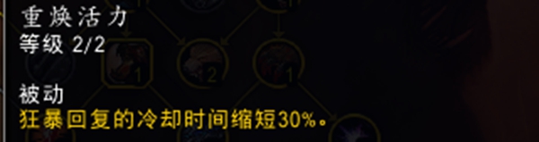 2级天赋说明是降低狂暴回复30%冷却时间。