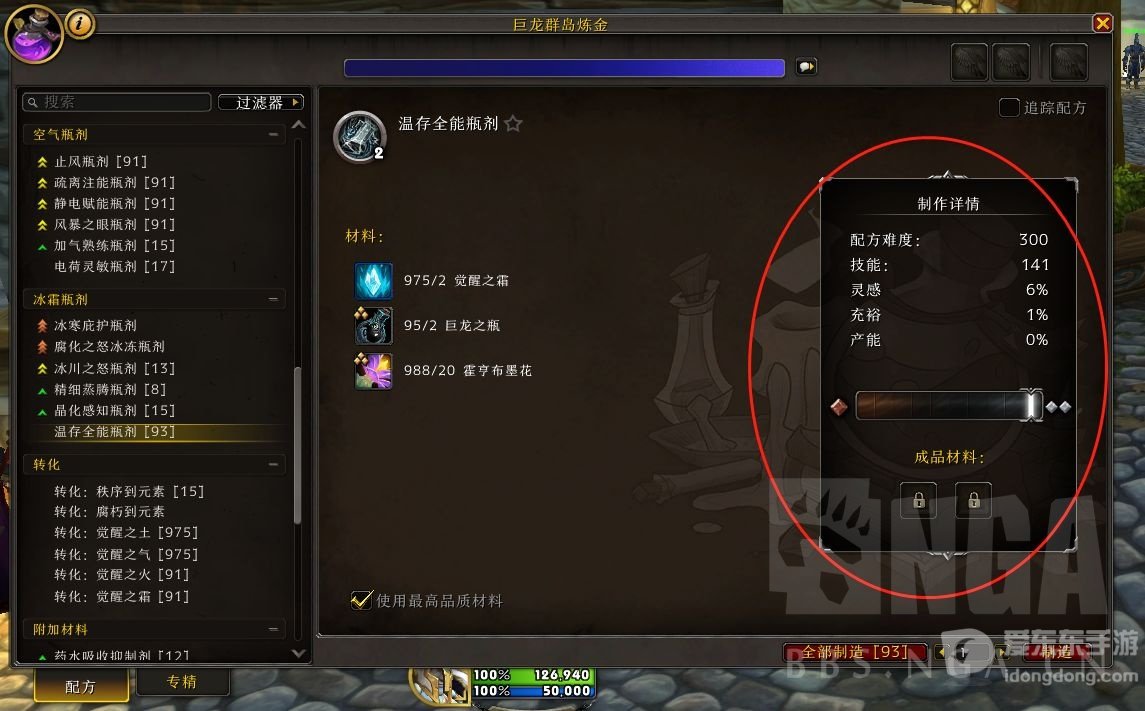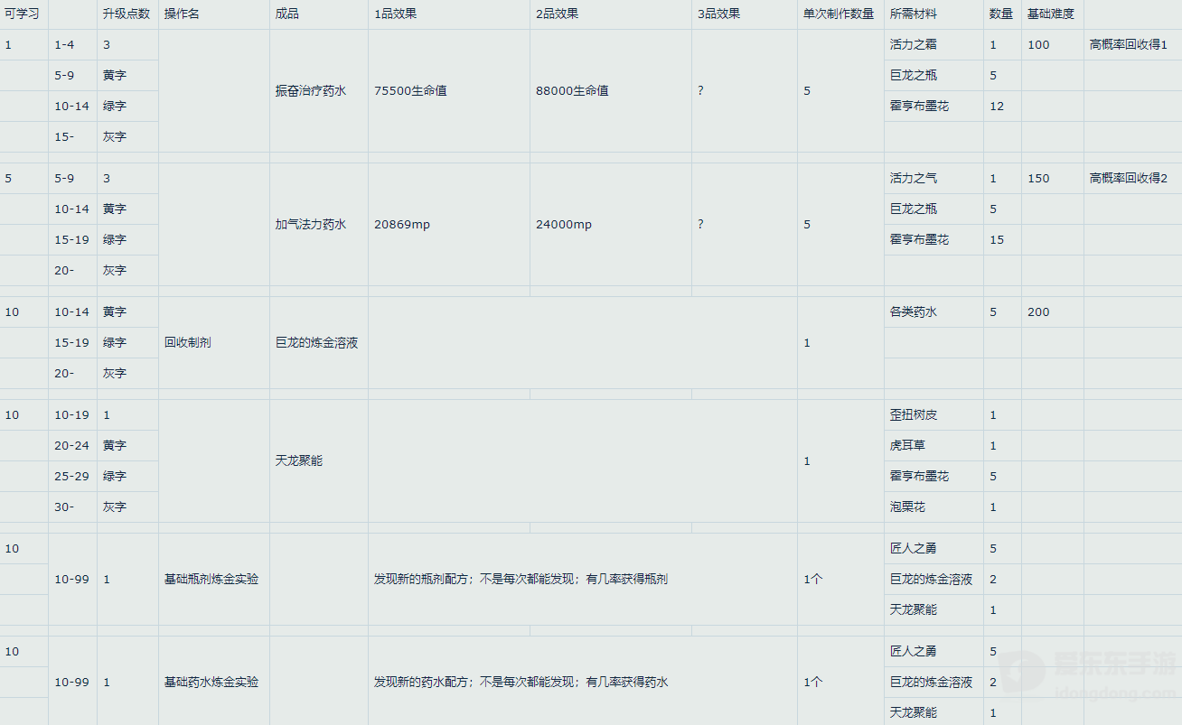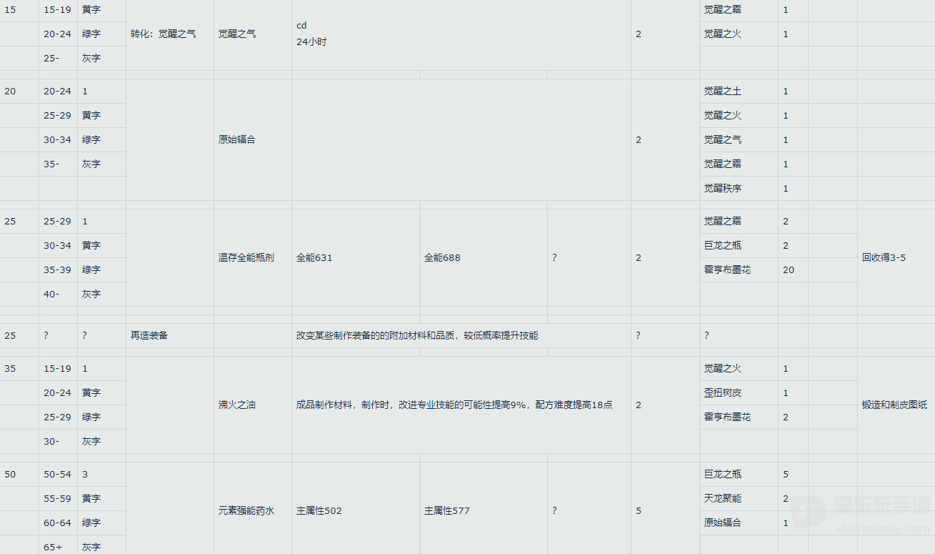 15-(15 or 16)转化:觉醒之气(24小时CD)这个配方学来时就是黄字,所以有材料的话就马上做一个就可以,但是不一定能涨技能点