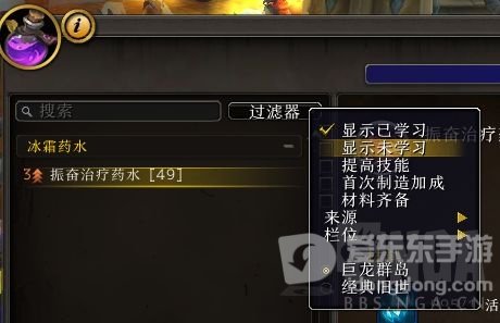 训练师只会传授角色11种配方,其中最高难度配方等级要求仅为50点,其他配方均需要通过炼金系统内的“炼金实验”功能随机发现,在“过滤器”选项内可以勾选显示未学习的所有配方以及其来源