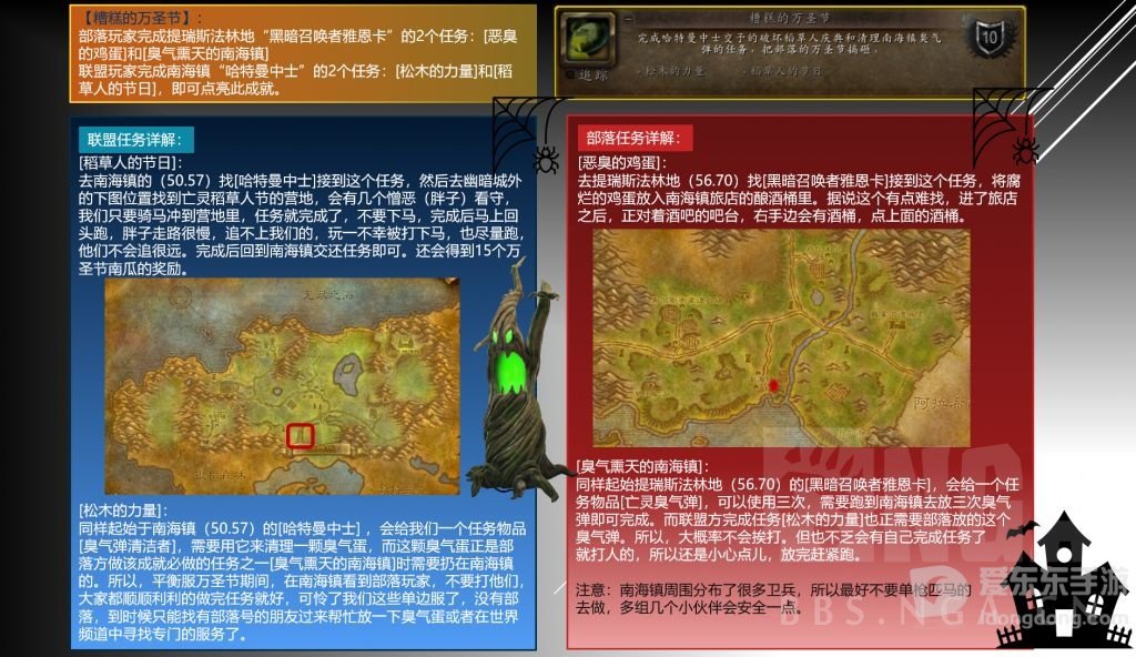 上图就是魔兽世界wlk糟糕的万圣节成就点亮需要完成的任务攻略,联盟和部落分别是两个任务,各位玩家可以点击上方链接查看大图。