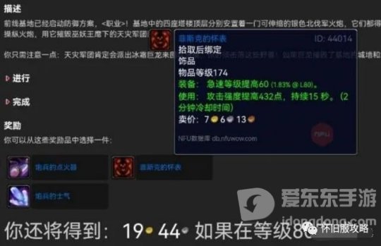 这一串任务非常简单,没有什么高难度大怪,最后一步还是载具战,完全给玩家爽的。奖励3个174装等的蓝色饰品,分别是暴击法伤、急速攻强和回蓝法伤。对比TBC的各种毕业饰品,属性全方位吊打秒杀,任务练级到了这个阶段,全身装备基本也该换完了,全是彻底进入80级的节奏。这里奖励的饰品配合牌子饰品,可以完美过渡到25人团本,直到你取得龙魂图典之类的毕业货前,都会一直使用它们。