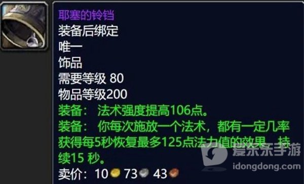 TBC蛋花的升级版,看着属性不错但其实特效有内置CD用起来一般,适合忽悠不懂行的治疗玩家高价购买。