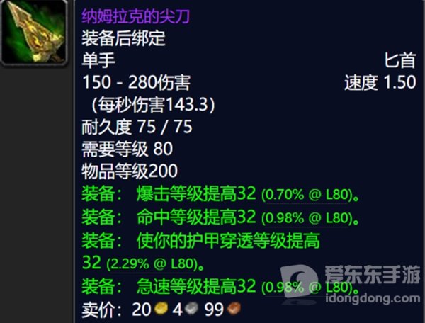 图标和模型和祖尔金掉落的扭曲预言之刃一样,适合战斗贼(副手)、邪DK(双持)和猎人使用,31点命中属性是它最大的优势。