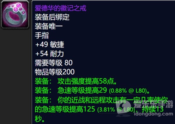 带被动特效的物理DPS极品戒指,P1阶段强势职业增强萨满、刺杀贼都盯着它,价格也不会太低。