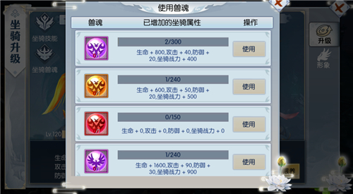 另外,【坐骑魂石】和【美人魂石】多扩展50%数量,可以使属性增加更多次数,让生命、攻击、防御、坐骑战力、美人战力都大幅提升,更加强力。