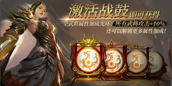 国战无疑是《狼烟四起》游戏中最刺激的玩法,也是证明主公及同盟实力的荣耀战场。在国战中,各位主公需要操作自己的精锐将士向对方大营进攻,摧毁对方的大营即可取得胜利。狭路相逢勇者胜,在双方对阵中,武将的战力属性跟其统帅的兵力,就成为了决胜的关键。新版本中主公等级满30级即可激活以及升级战鼓系统,获得强化的加成BUFF。帮助主公在国战中提升自己武将的示例,强化国战强度。