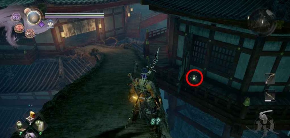 在庙宇的平台上面,需要玩家到第二楼(庙宇外的有梯子可以爬上去)