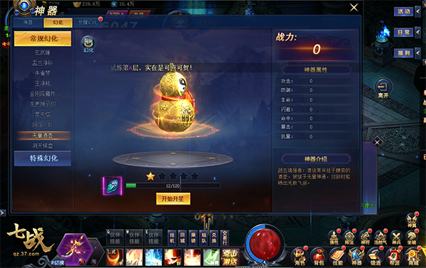 《七战》是37网游旗下,2020年推出的一款玄幻精品网游大作。游戏由flash3D引擎打造,利用3D图像成影、高精建模等技术,让游戏呈现精致绚丽的画面感。在这片广袤的玄幻大陆,玩家置身其中,可以利用天材地宝自由打造神器,养成灵禽异兽,驯化为自己的坐骑。丰富多样的天地灵气幻化神翼,呈现美观与个性兼具的换装DIY乐趣。同时,游戏还拥有众多创新玩法,例如玩家渡劫飞升异界后,将开启自由空战玩法,60多位性格各异、技能强横的伙伴助战,助你越级打怪。更推出了绿色玩法模式:上线VIP全免费,击杀怪物也能掉充值灵石、满级装备等稀有道具资源。