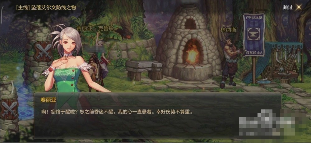 玩家在第一次进入游戏的时候就会触发剧情,在剧情结束了之后,与林纳斯NPC进行对话,对话手即将结束的时候就会 出现第一个主线任务:坠落艾尔文防线之物