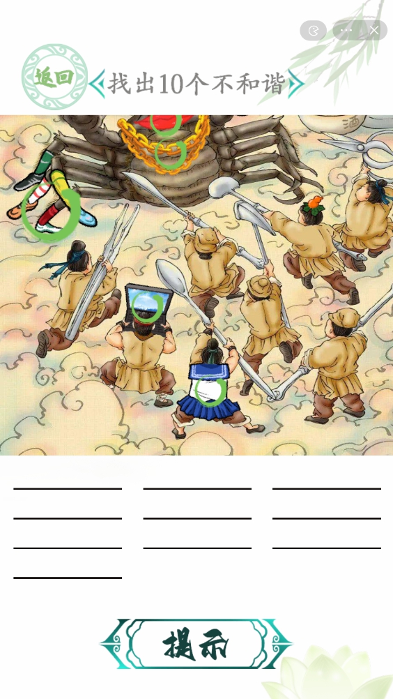 其实这12个动物还是很好找的,只要大家的观察力足够仔细,就可以看到了,如果大家缺了哪个动物没有找出来的话,那么就多参考一下小编的本篇攻略吧,点击一下图片上的绿色的圆圈就可以过关了。