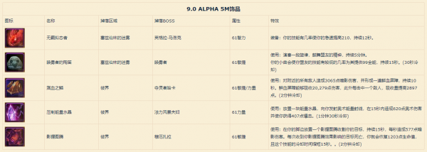 在魔兽世界9.0的五人副本中,新增了一些饰品,现在让我们来看看它们的属性。