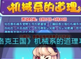 洛克王国机械系的道理玩法介绍 机械系的道理活动攻略洛克王国这款游戏最新推出的玩法机械系的道理需要玩家们回答几个问题才可进行挑战,下面就为大家介绍一下洛克王国机械系的道理玩法,希望能对大家有所帮助。