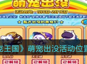 洛克王国萌宠出没活动宠物在哪 萌宠出没活动位置分享洛克王国游戏中的活动多多,玩法有趣,很多玩家都在询问萌宠出没活动宠物在哪?不知道位置的小伙伴,下面小编将详细的位置分享给大家,一起来了解一下吧!帮助你轻松的完成挑战任务!