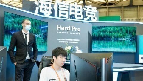 来自海信旗下收款Hard硬派序列电竞玩家专属显示器,今日在UDE2020第二届国际显示博览会高调亮相,2020年08.01海信携手完美世界CS:GO职业联赛亚洲区夏季赛亚军的iG战队CSGO分部为广大游戏玩家们一起现场“检验”海信Hard硬派系列电竞显示器的含金量。