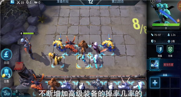 这里的装备有品级之分也只是在掉落率上面有差别。游戏中装备分为白、蓝、紫、粉、橙五个等级,不少高级装备配上特定的棋子能够表现出恐怖的实力,例如虚空长袍配幽灵机的可怕程度大概就是绝大多数玩家不希望在对手身上领教的。不过装备一般是随着回合增长不断增加高级装备的掉率几率的,前面20回合基本上很难看到粉色装备。